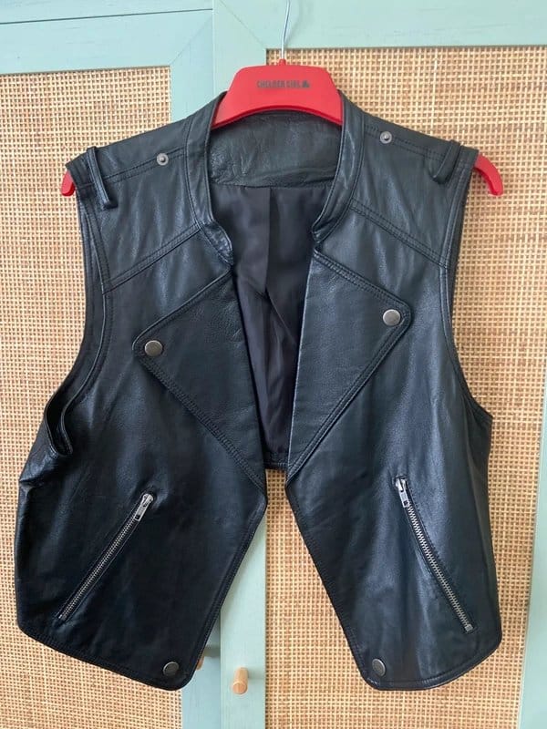 The ASOS Black Leather Biker Waistcoat is available in sizes L.