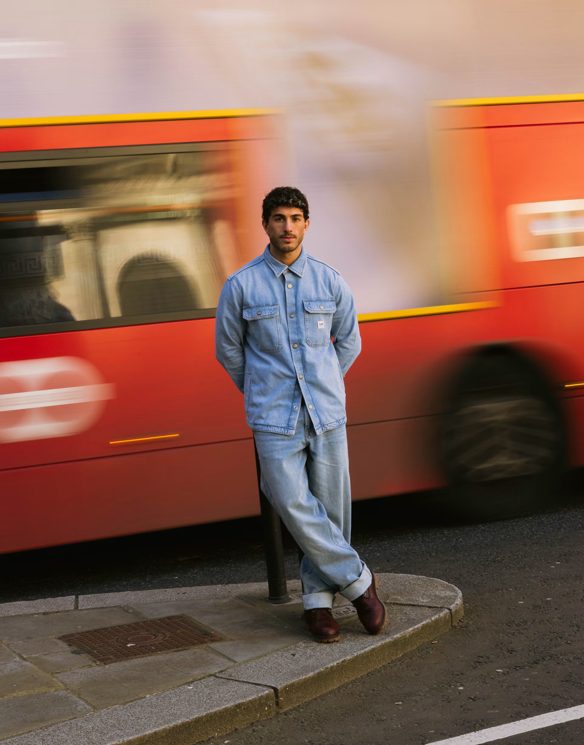 The ASOS Lee Workwear Denim Overshirt in Light Wash is made from denim.