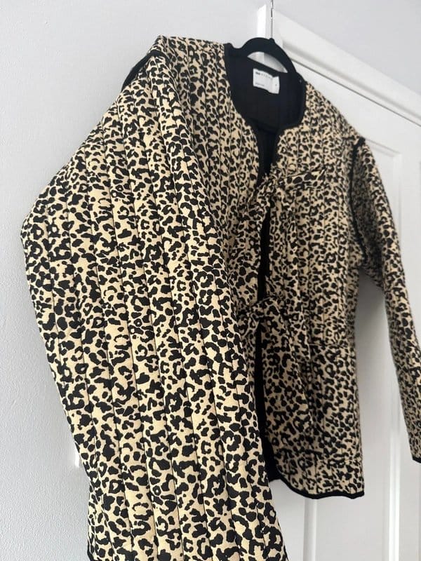 The ASOS Black and Beige Leopard Print Padded Jacket is available in sizes S.