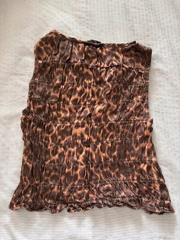 The ASOS Brown Leopard Print Ruched Top is made from polyester, spandex.