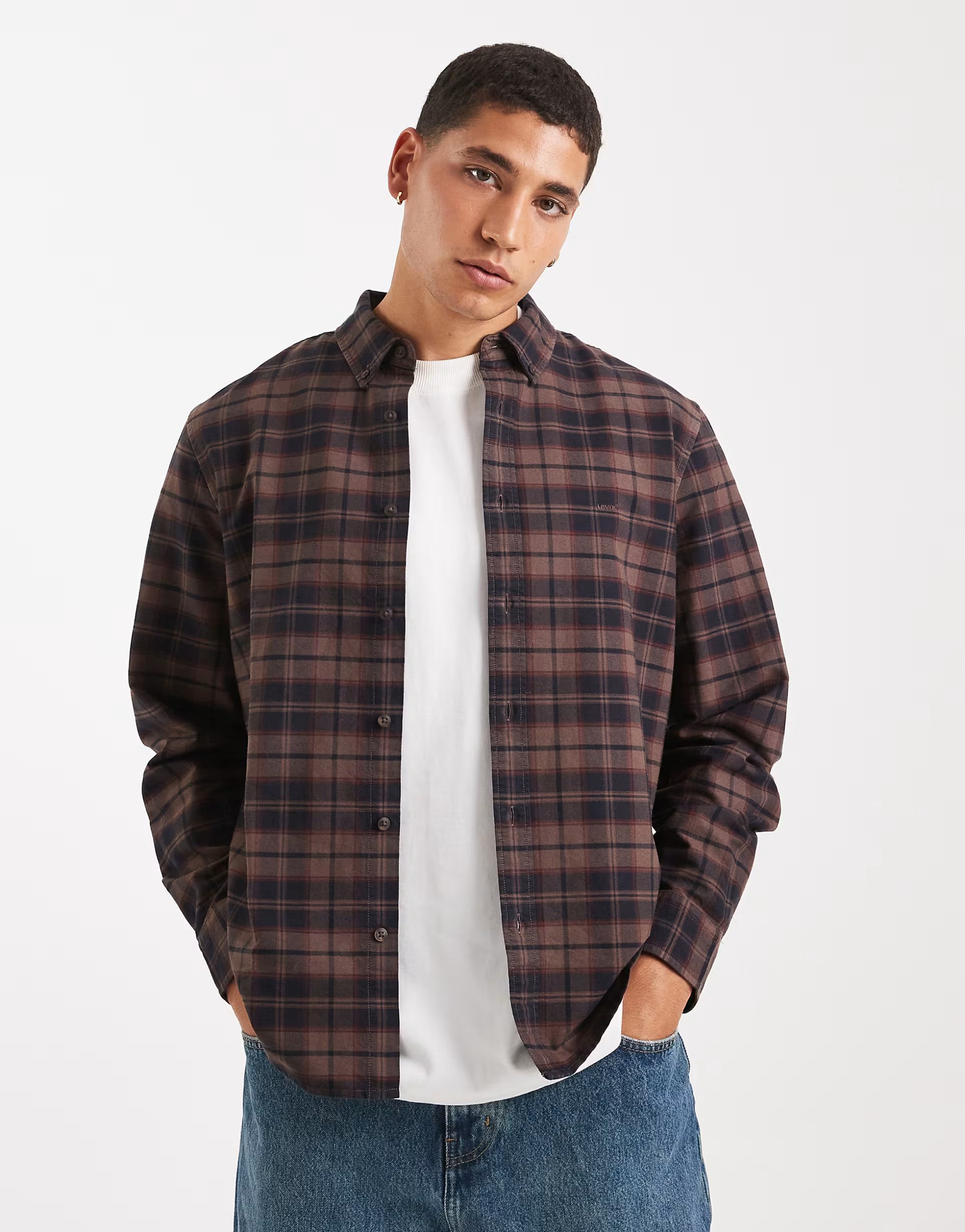 The ASOS Levi's Long Sleeve Shirt in Brown Check is available in sizes XXXL, XXL, XL, XS, L, M, S.