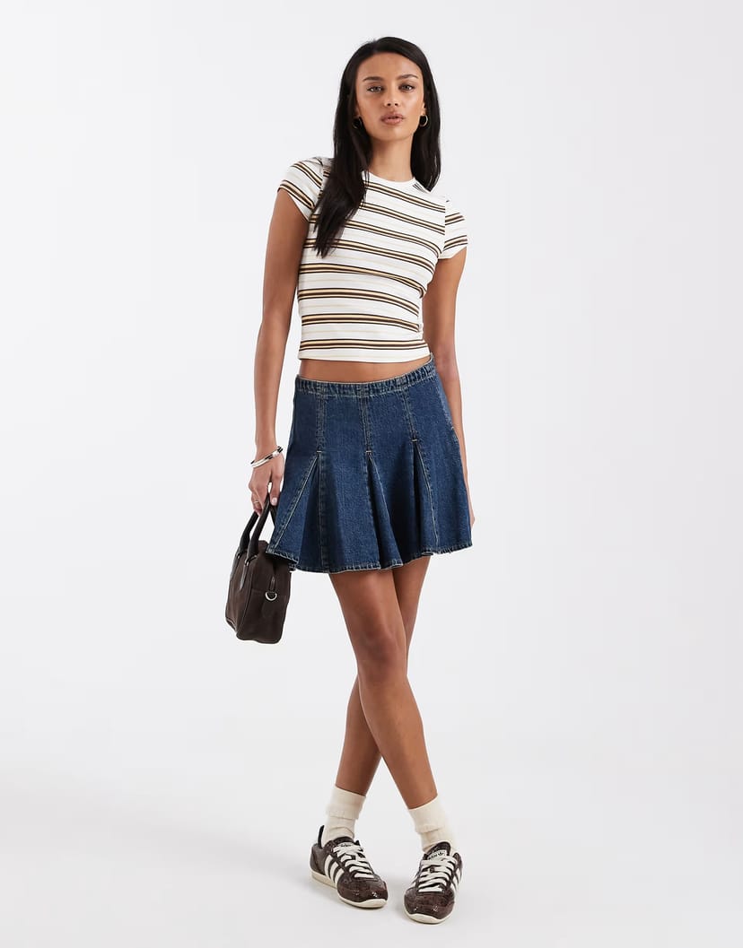 The ASOS Levi's Pleated Denim Mini Skirt in Dark Wash is ideal for casual, smart-casual.