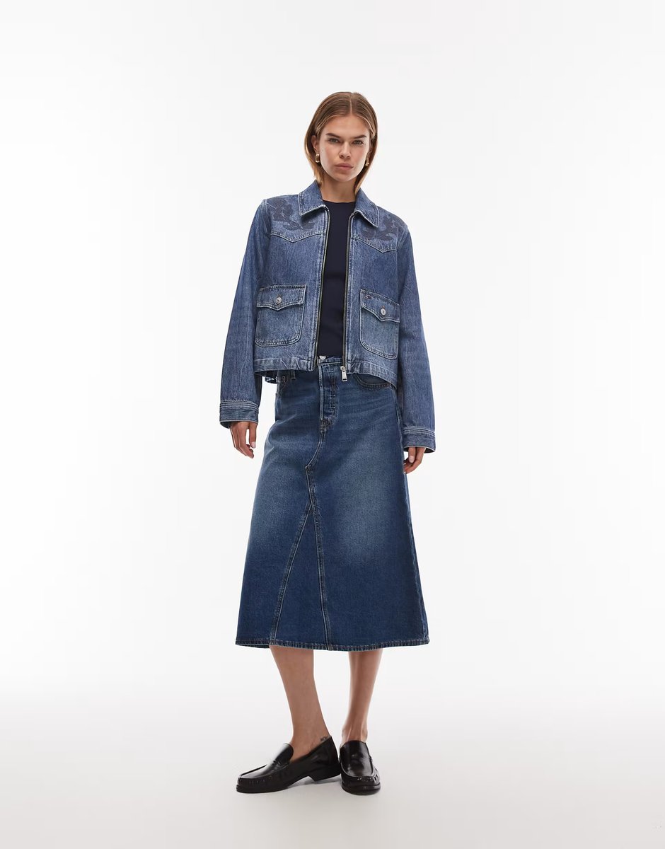 The ASOS Levi's Iconic Long Denim Skirt in Mid Wash is ideal for casual, smart-casual.