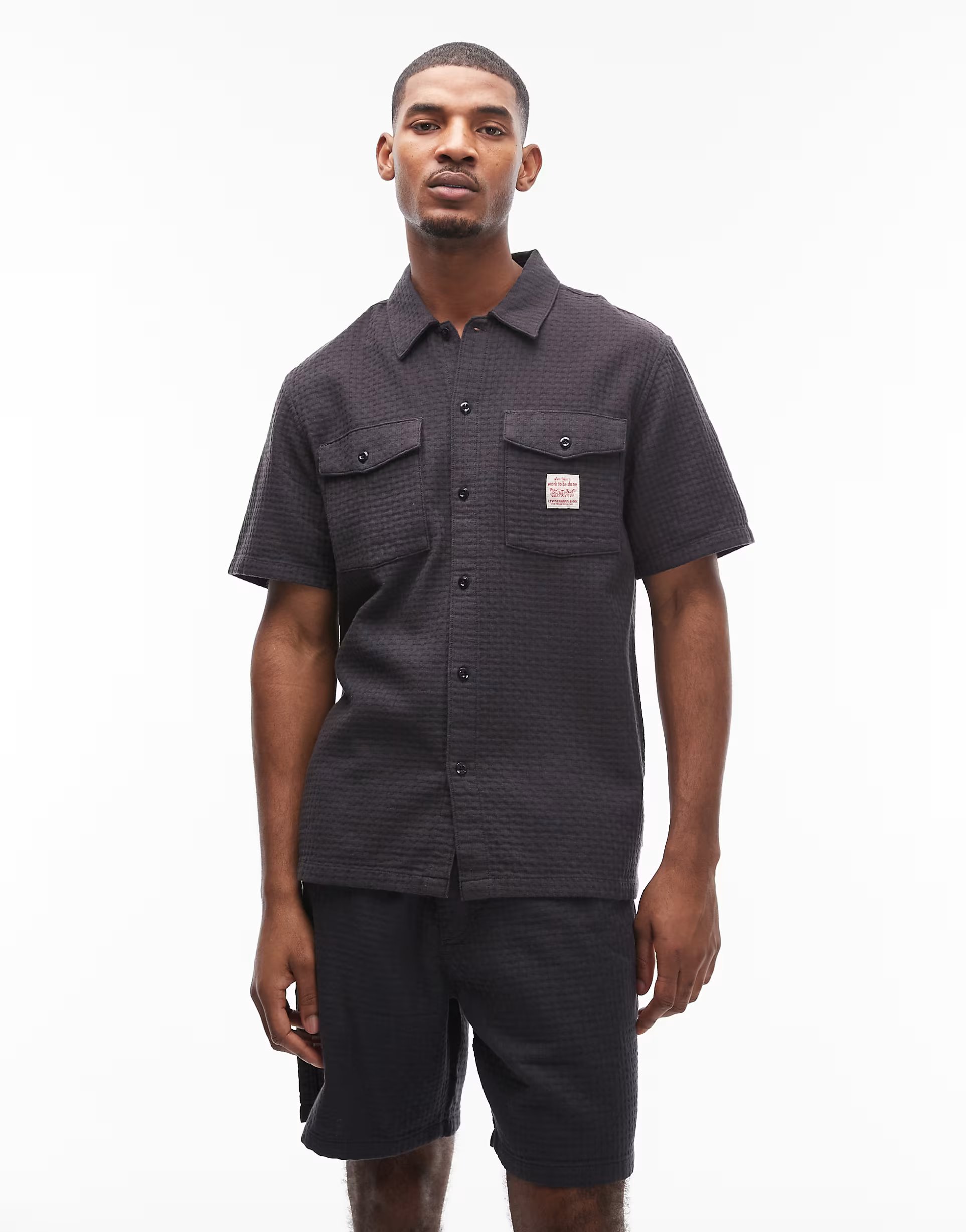 The ASOS Levi's Workwear Short Sleeve Shirt in Black is available in sizes XXXL, XXL, XL, XS, L, M, S.