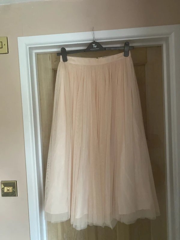 The ASOS Peachy Pink Tulle Mesh Ballerina Midi Skirt is available in sizes M.