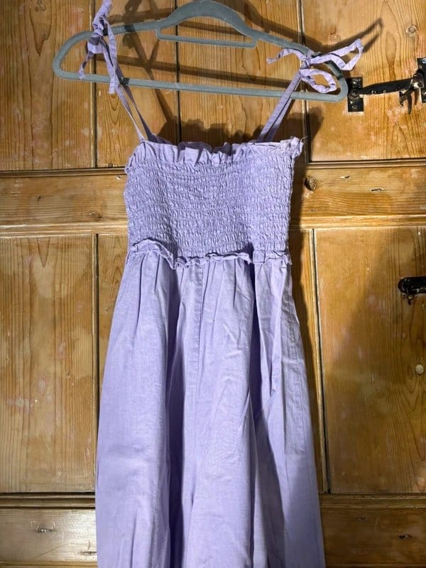 Charming lilac cotton midi jumpsuit by ASOS featuring a shirred top and loose legs. Perfect for a relaxed yet stylish look.