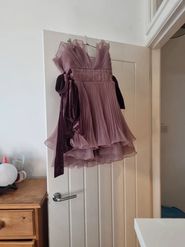 The ASOS Luxe Lilac Pleated Mini Dress with Velvet Bow Detail is ideal for party, wedding-guest, evening, date-night.