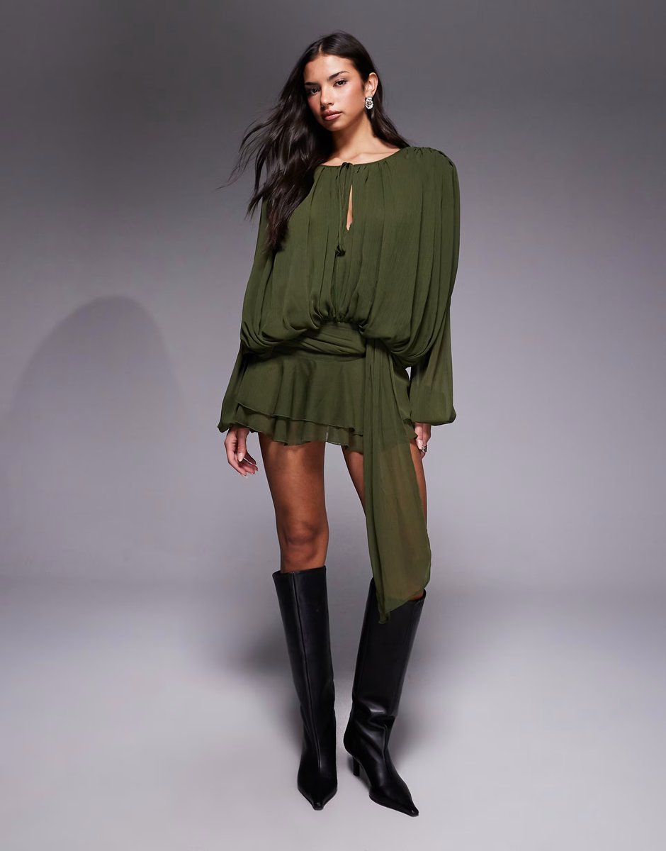 The Lioness Elements Khaki Balloon Sleeve Mini Dress is ideal for casual, evening, party.
