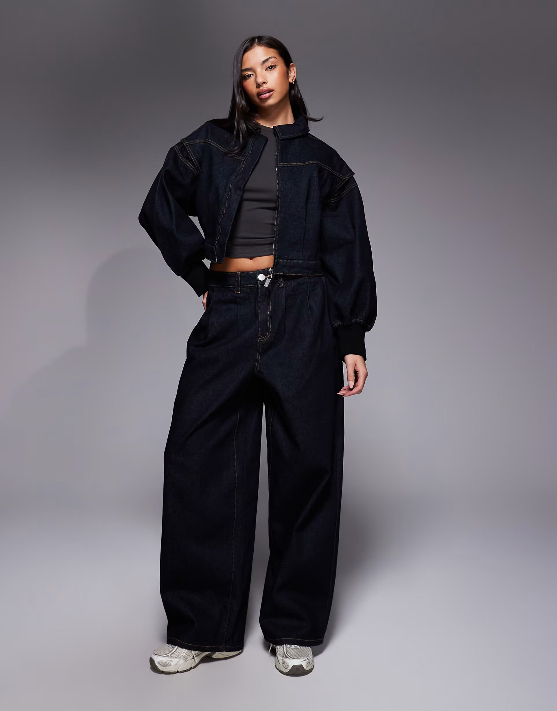 The ASOS Boxy Zip Through Denim Jacket & Jean Co-ord in Raw Indigo is made from denim.
