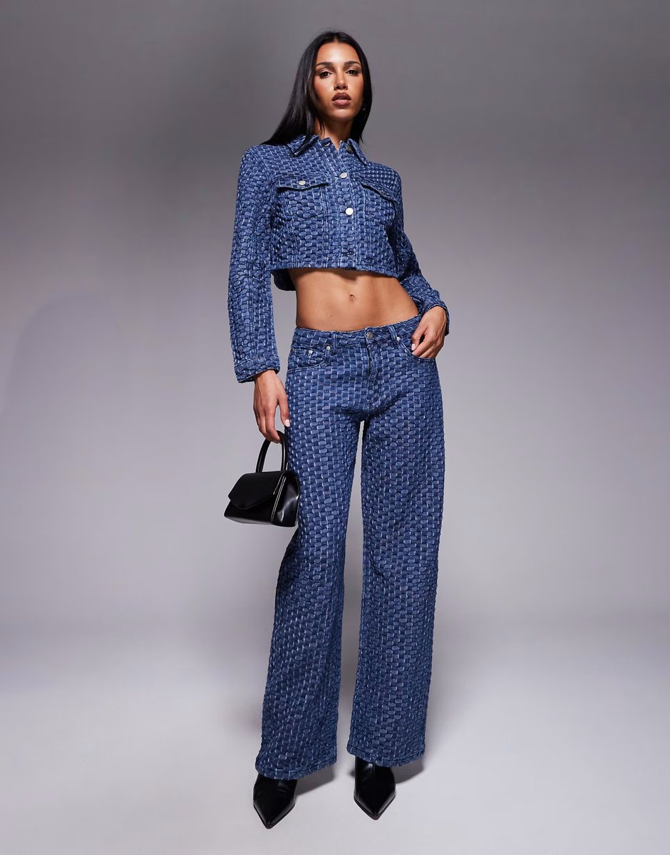 The Liquor N Poker Bubble Indigo Cropped Denim Jacket and Jean Co-ord is ideal for casual, smart-casual.