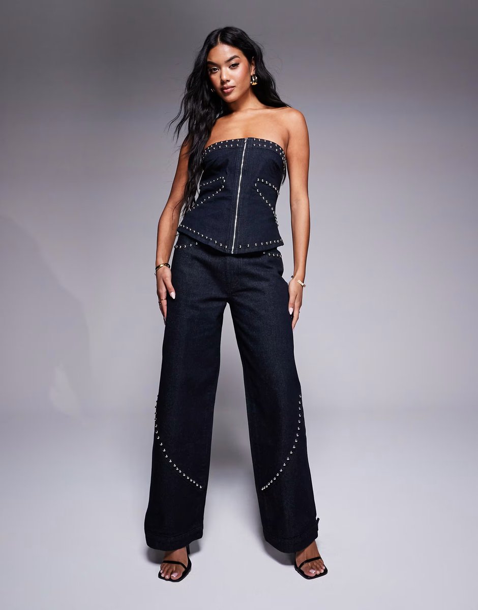 The Liquor N Poker Denim Studded Co-ord is ideal for casual, evening, weekend.