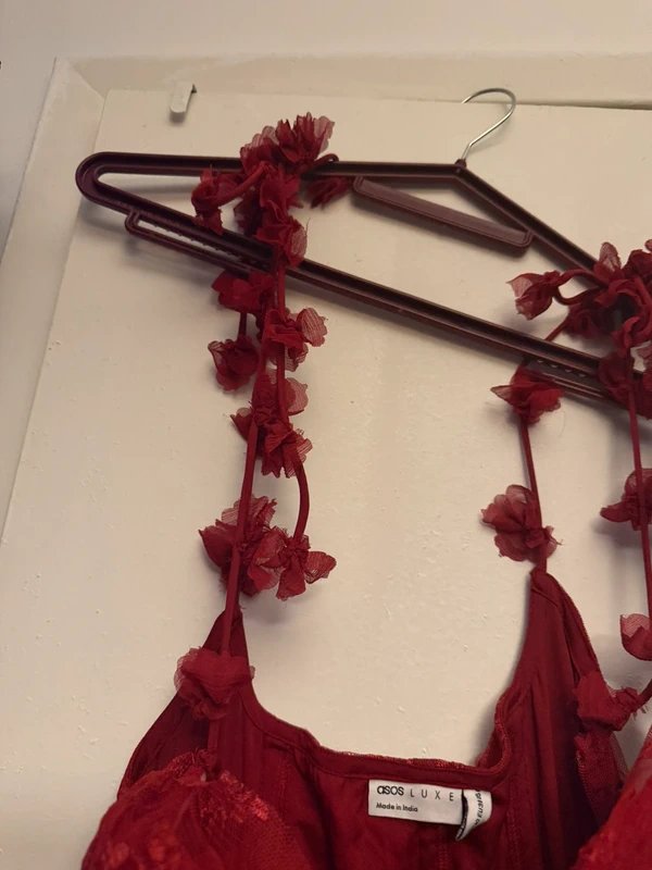 Red Long Sleeve Floral Embellished Lace Maxi Dress — the must-have occasion dress for wedding guests, evening events, dinner parties. Designed in vibrant red, this long-sleeve maxi dress features 3D floral embellishments, a sheer lace bodice, and a full skirt for a flattering fit. Crafted from lightweight sheer lace with subtle shimmer, it catches the light beautifully. Includes a full-length jersey slip lining for comfort and coverage.