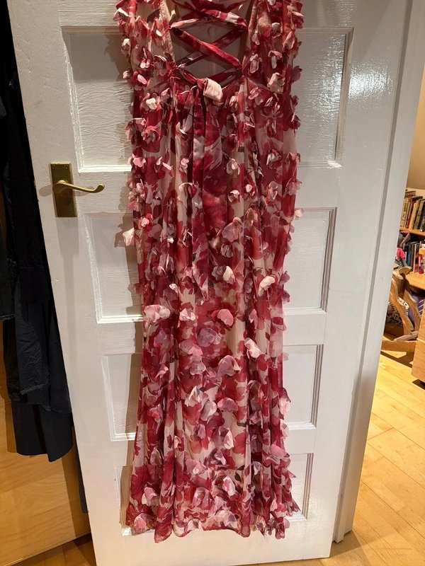 The Asos Luxe Pink 3D Flowers Corset Dress is available in sizes S.