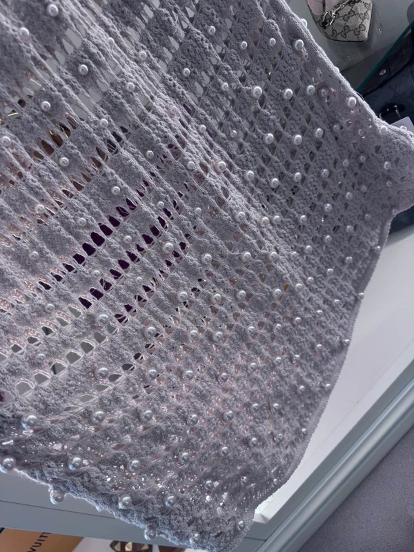 Designed with a stunning cream color, crochet fabric, and a regular fit, this halterneck dress is perfect for beach outings. The dress features a beautiful pearl embellishment and a crochet rose corsage for added elegance.