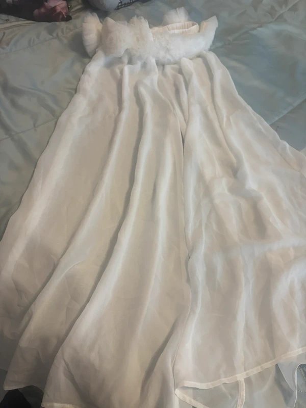 The ASOS Luxe Cream Chiffon Beach Trousers is available in sizes M.