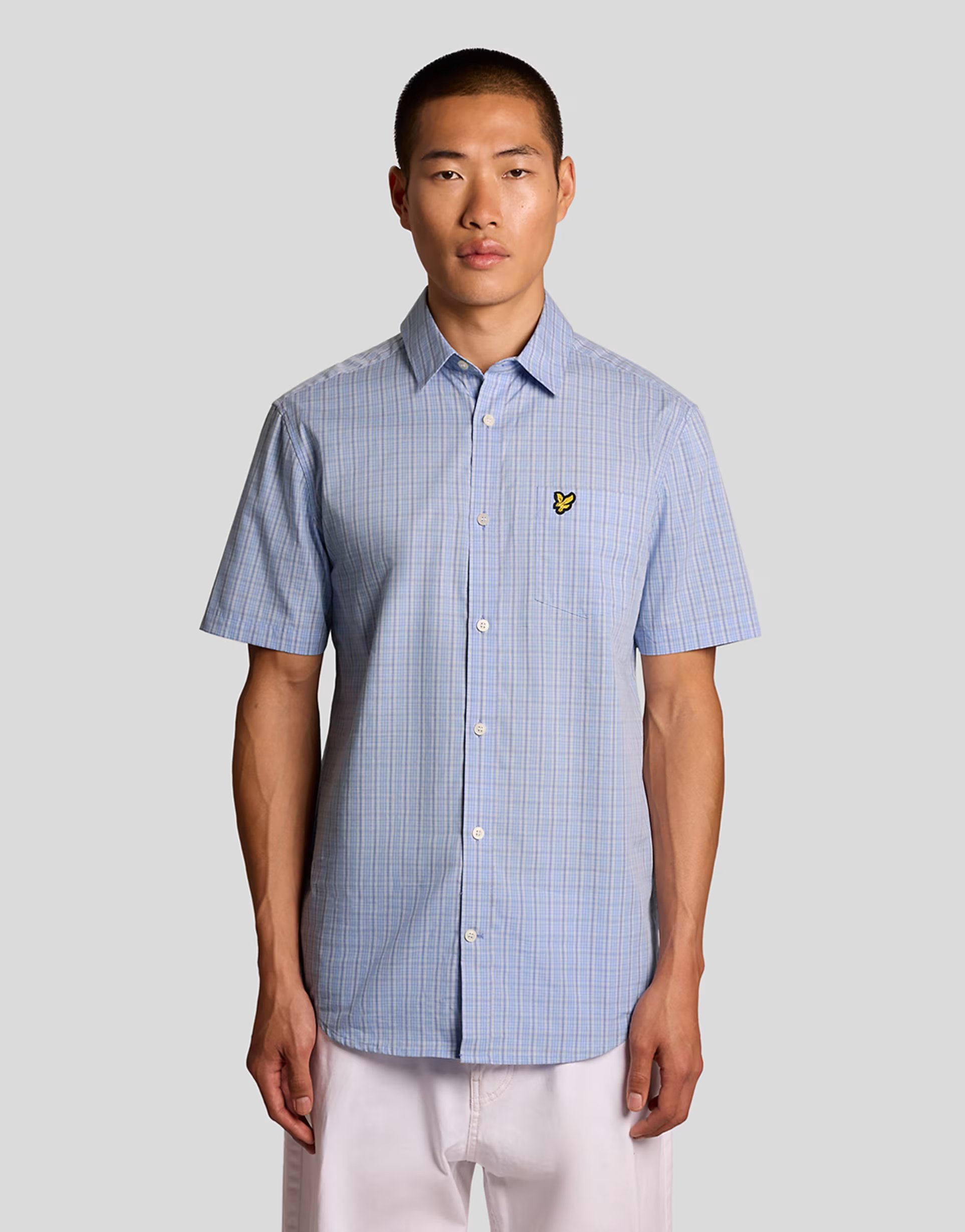 The ASOS Lyle & Scott Check Short Sleeve Shirt in W444 Chalk Blue is available in sizes XXXL, XXL, XL, XS, L, M, S.