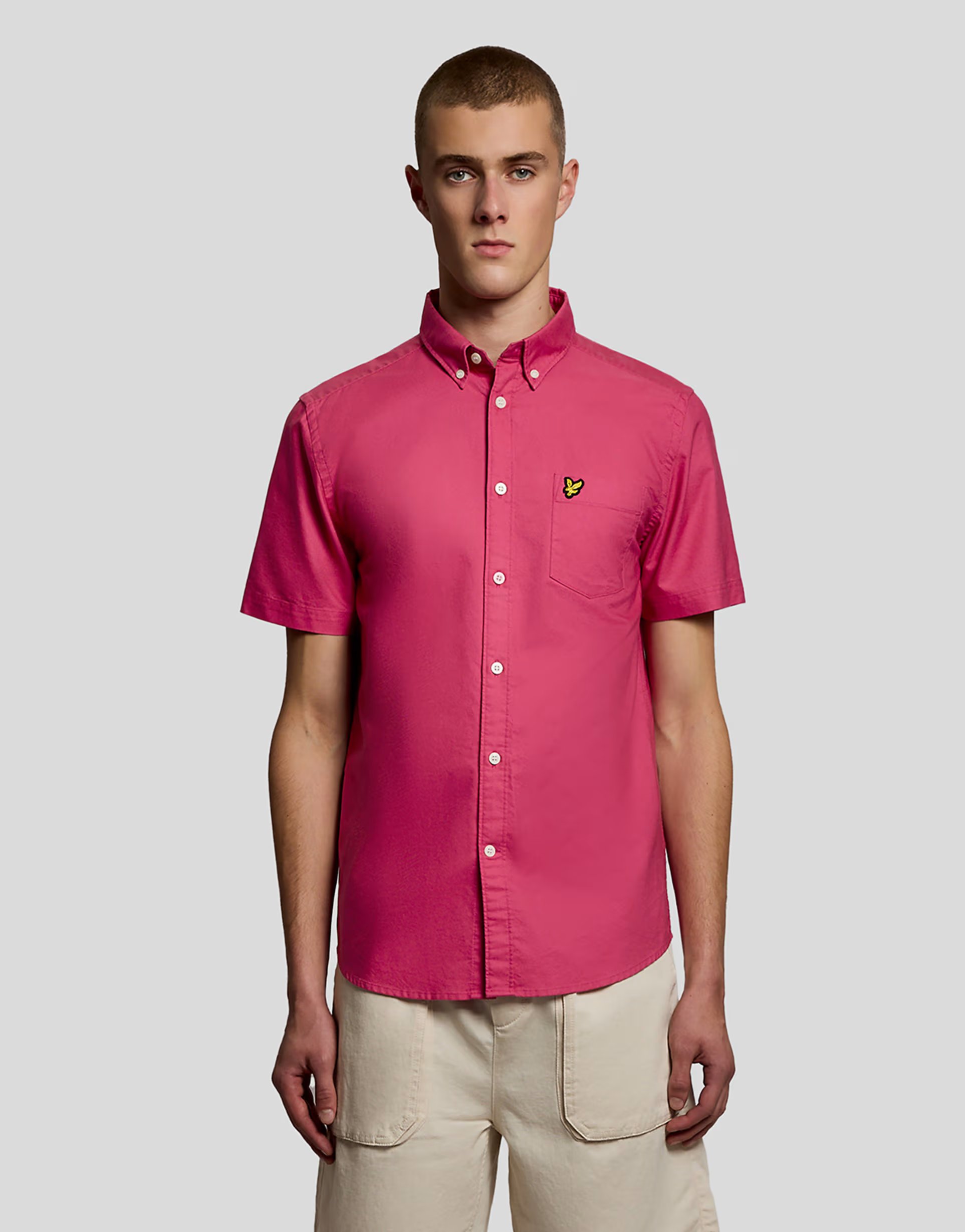 The ASOS Lyle & Scott Short Sleeve Oxford Shirt in Dahlia is available in sizes XXXL, XXL, XL, XS, L, M, S.