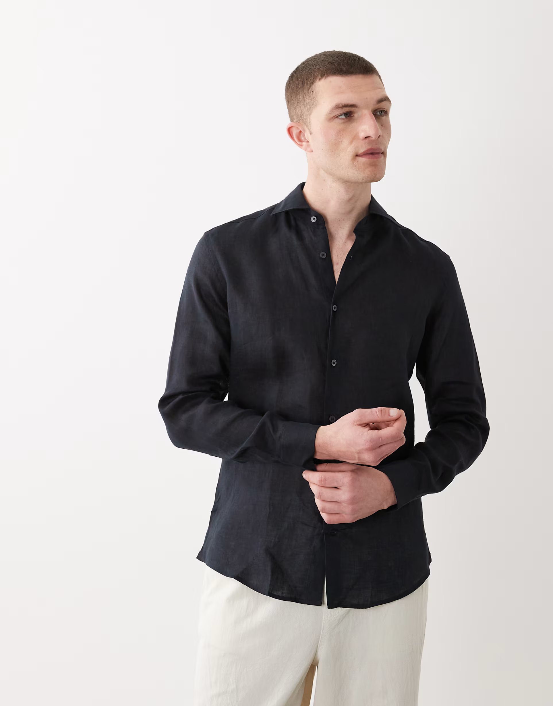 The Mango ASOS Navy Linen Shirt with Long Sleeves is made from linen.