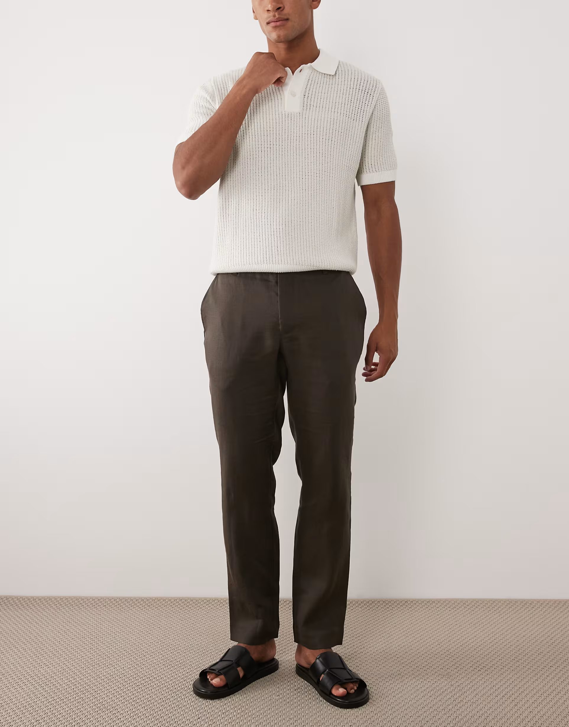 The ASOS Mango Straight Fit Linen Trousers in Dark Brown is ideal for casual, smart-casual.
