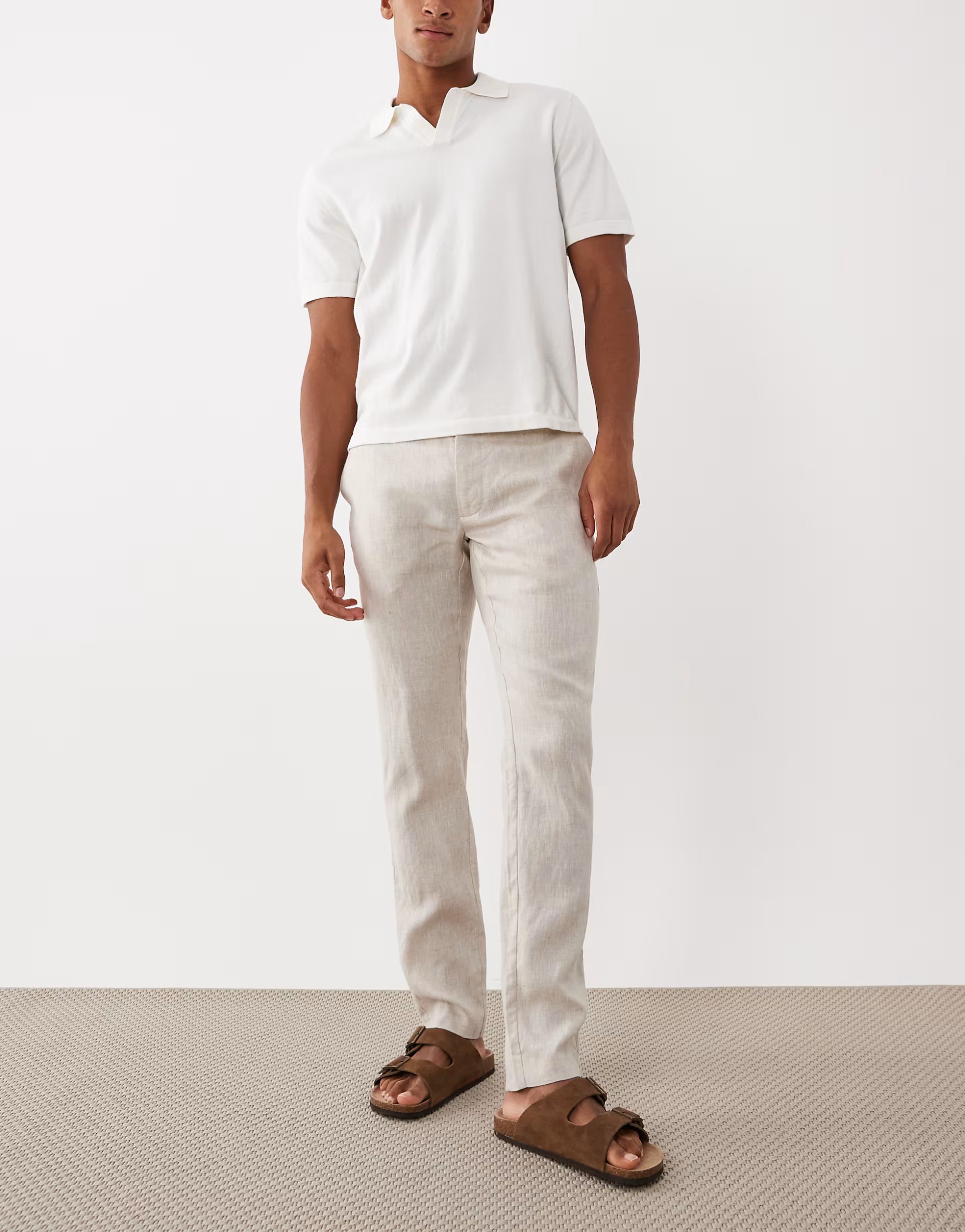 The ASOS Mango Linen Straight Fit Trousers in Ecru is ideal for casual, smart-casual.