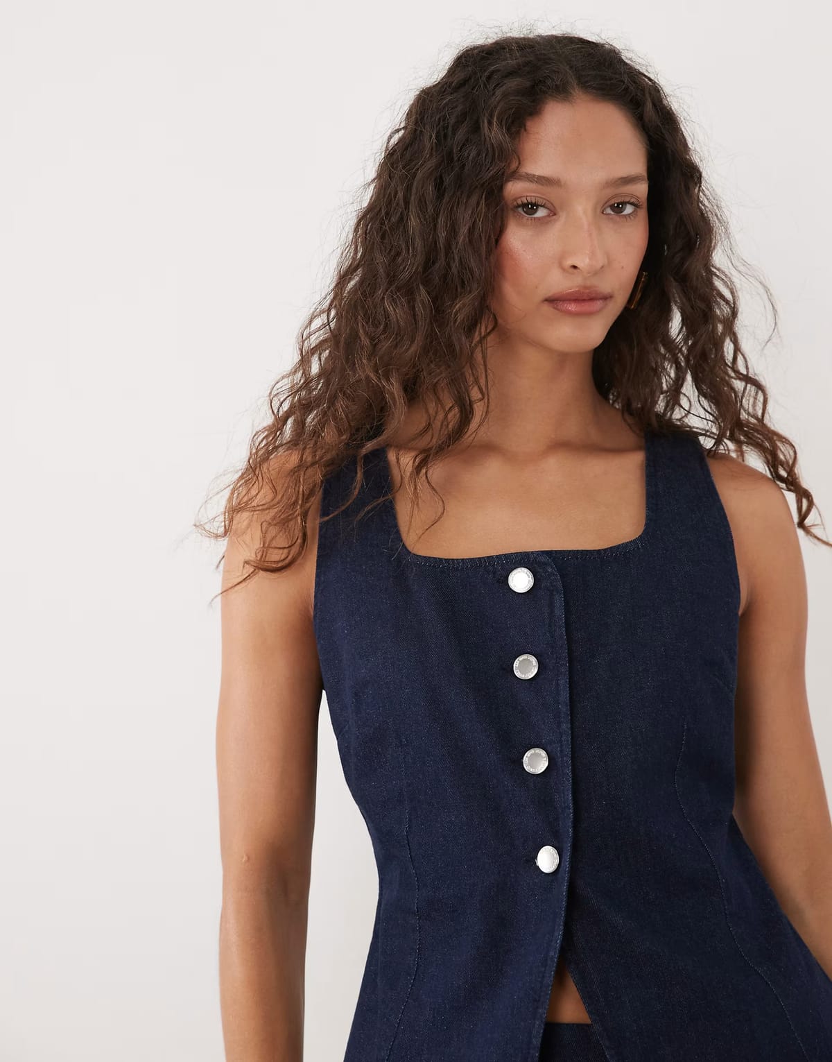 The ASOS Mango Dark Blue Square Neck Denim Top Co-ord is ideal for casual, weekend.