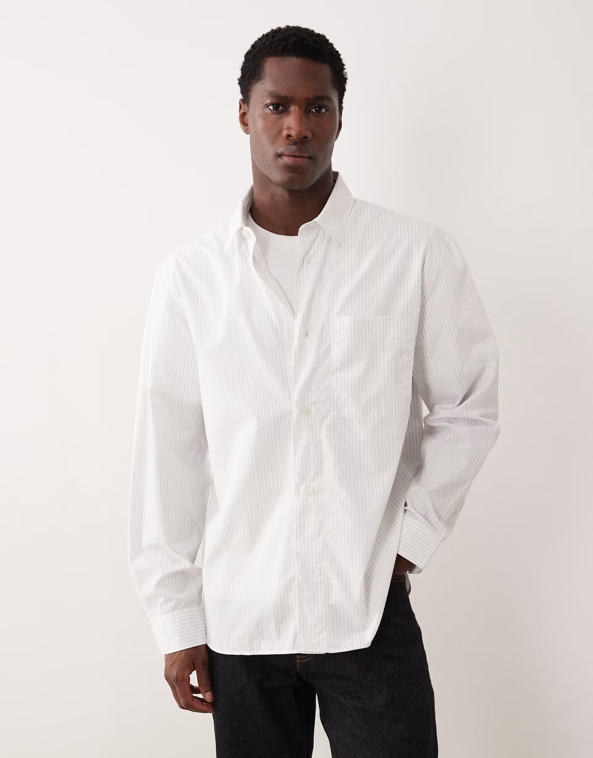 The ASOS Classic 100% Cotton Striped Shirt in White is ideal for casual, work.