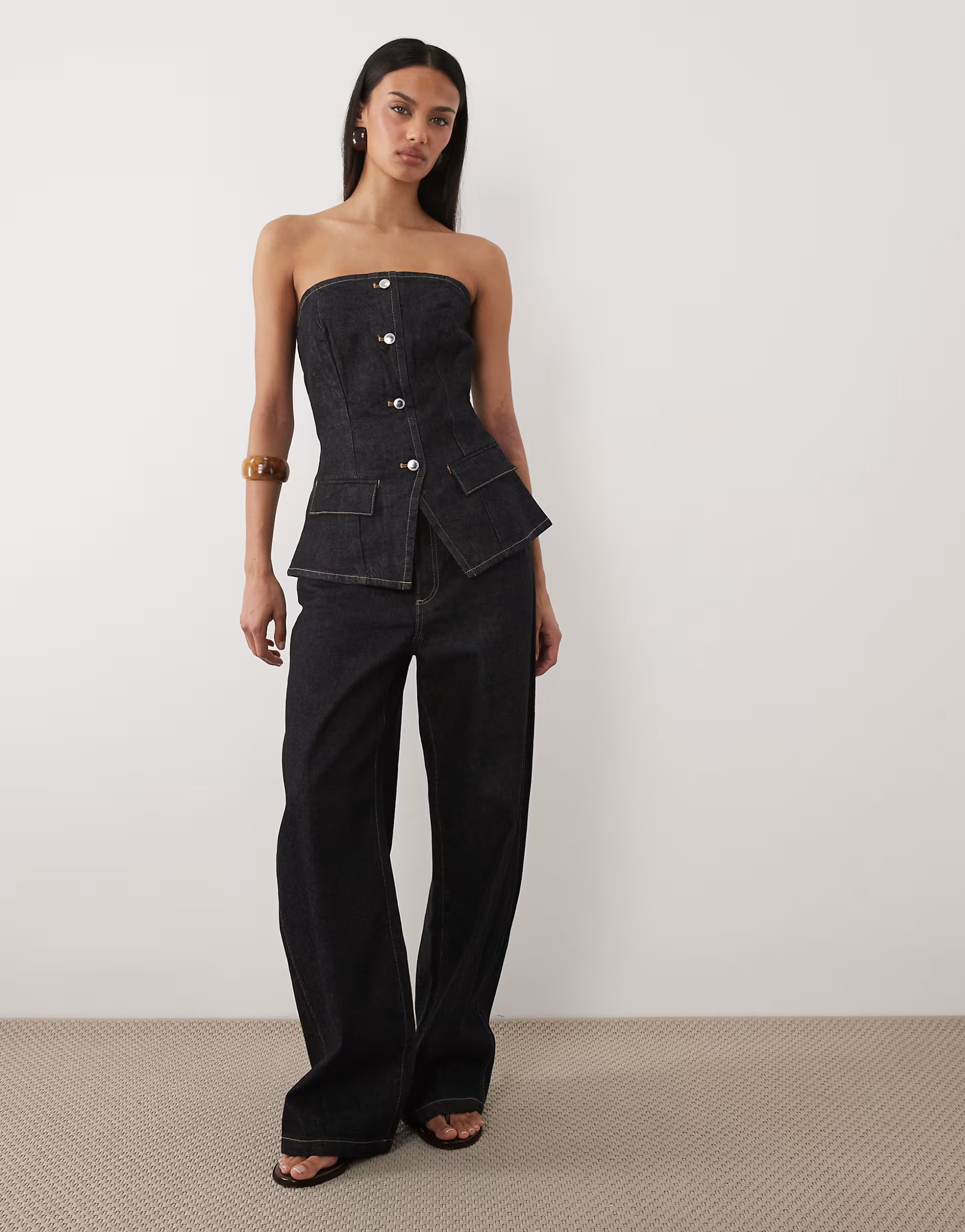 The ASOS Clemence Indigo Cotton Jean Co-ord is ideal for casual.