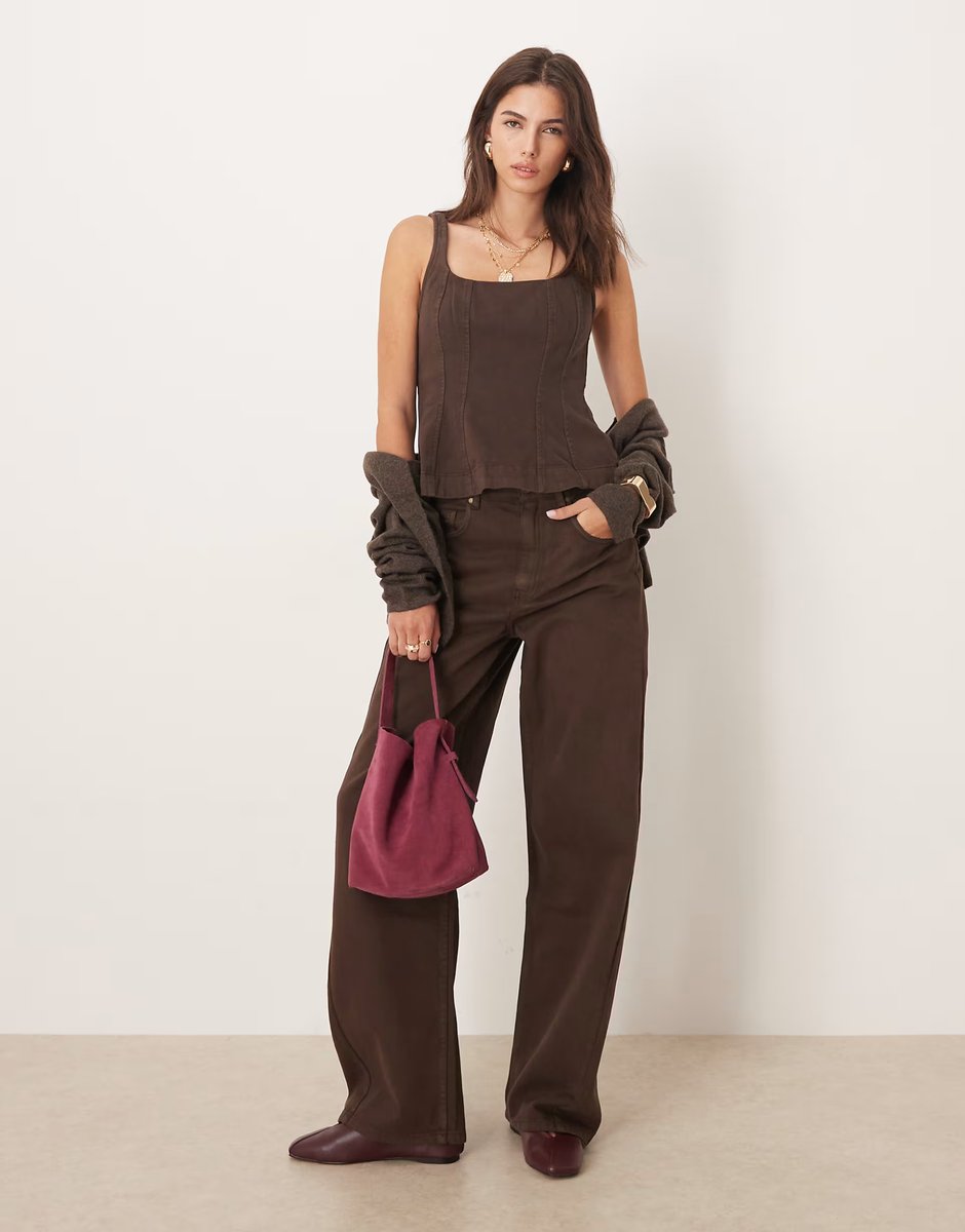 The ASOS Mango Cotton Barrel Leg Co-ord Jean in Brown is ideal for casual.