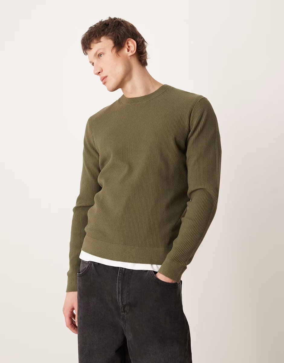 The ASOS Khaki Cotton Mix Crew Neck Jumper is ideal for casual, work, smart-casual.
