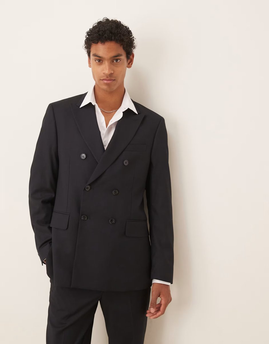 Crafted with a double breasted design, this navy co-ord suit from Mango by ASOS is perfect for a slim fit look. Ideal for both business and casual occasions.