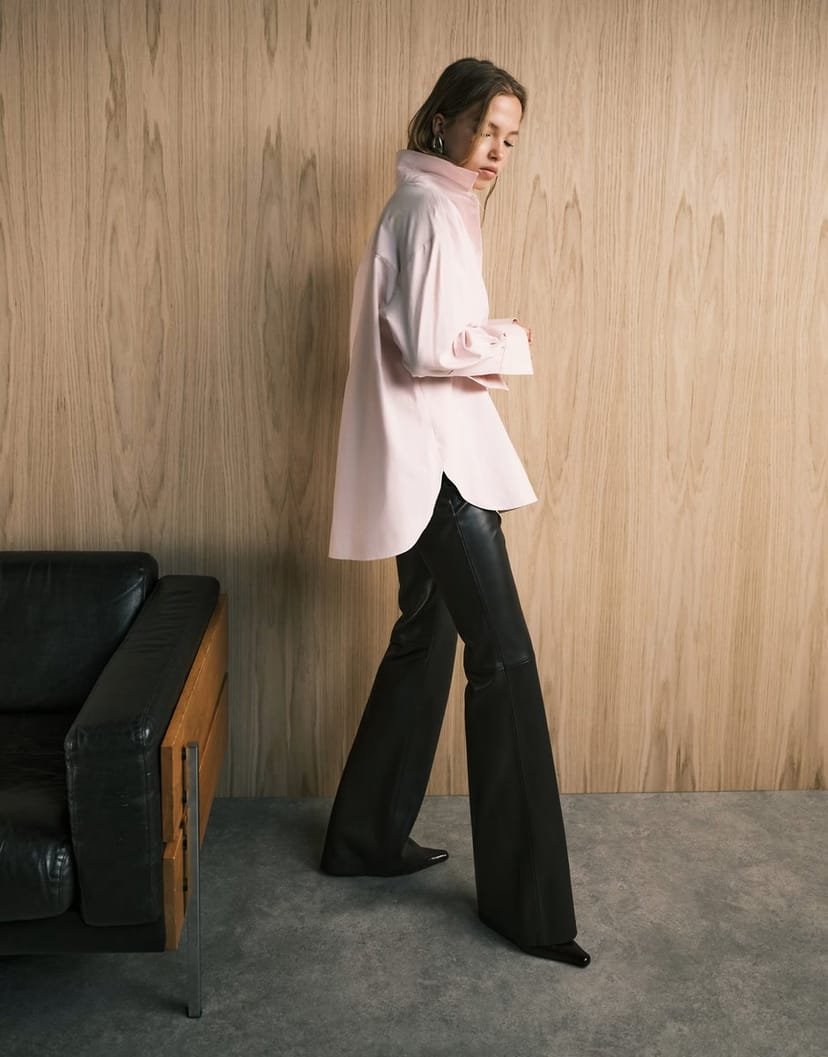 Designed with brown faux leather, these flared trousers from Mango feature a sleek silhouette and are perfect for a modern, edgy look. Ideal for casual outings or smart-casual settings.