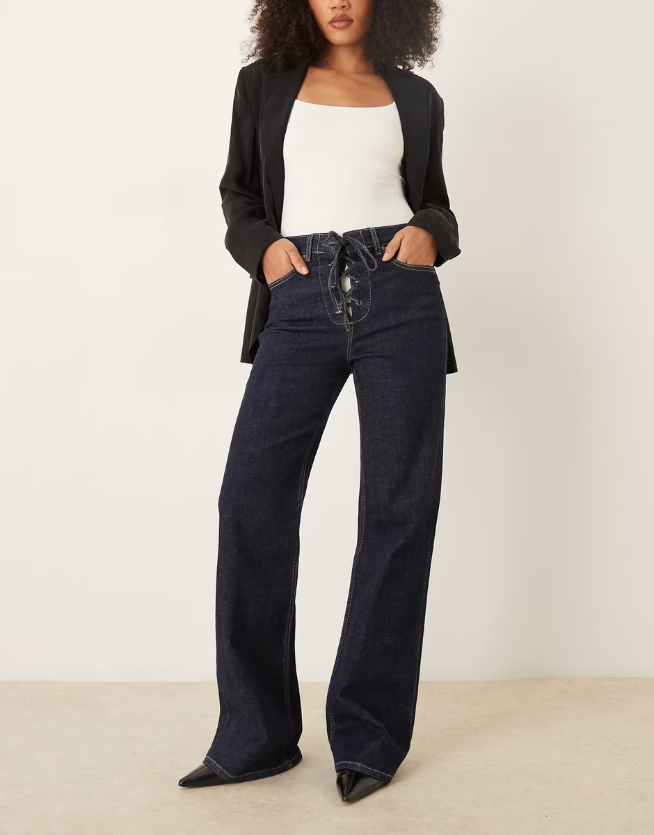 The Mango Flor Indigo Cotton Tie Detail Straight Jean Co-ord is ideal for casual, business, evening.