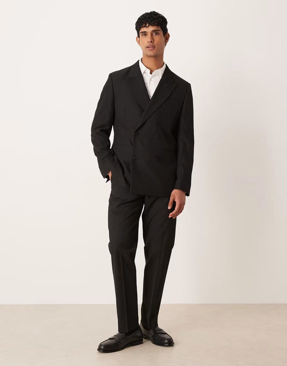 “Pair with a crisp white shirt and black leather dress shoes for a polished business look.”
