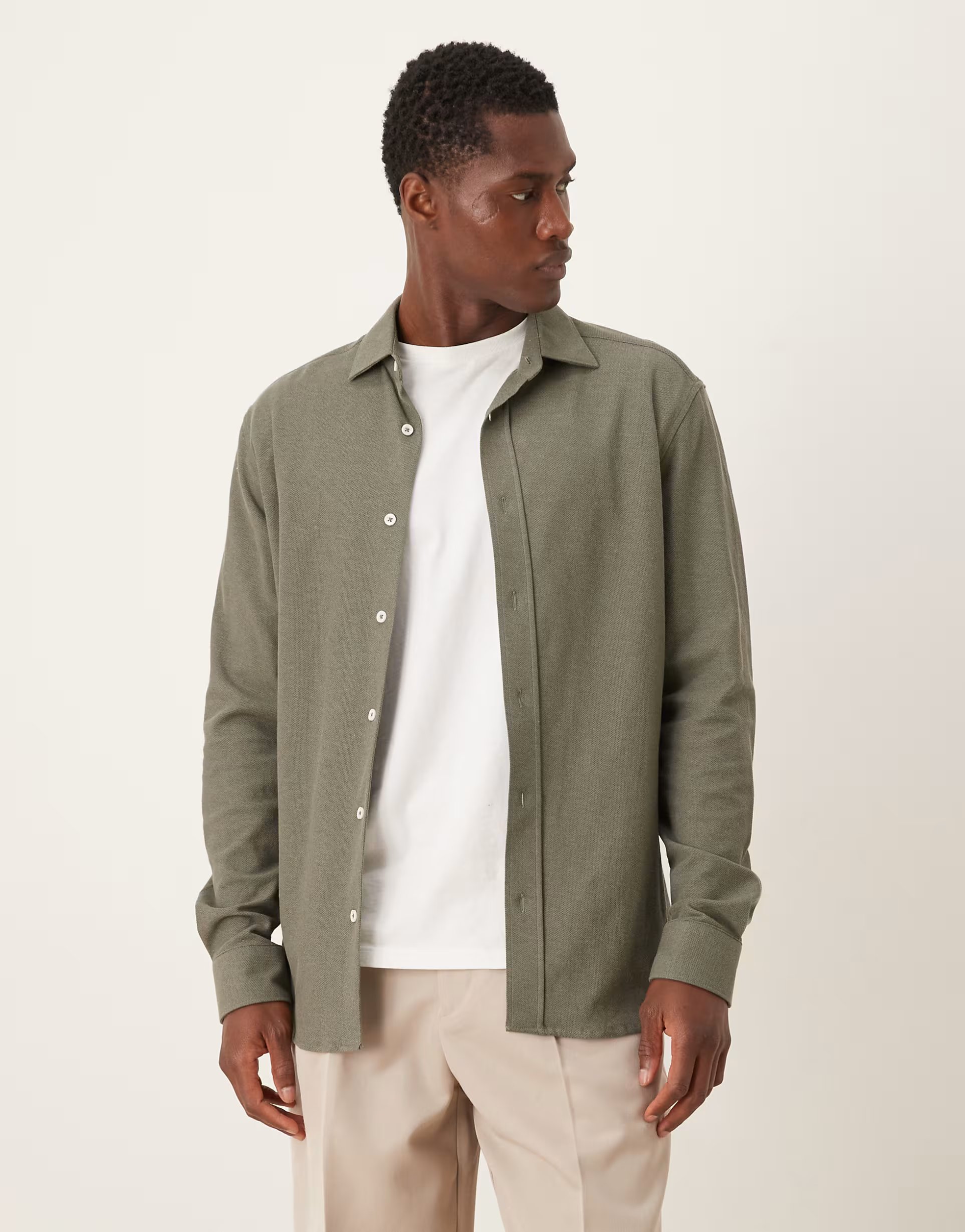 The ASOS Khaki Cotton Shirt in Khaki is ideal for smart-casual.