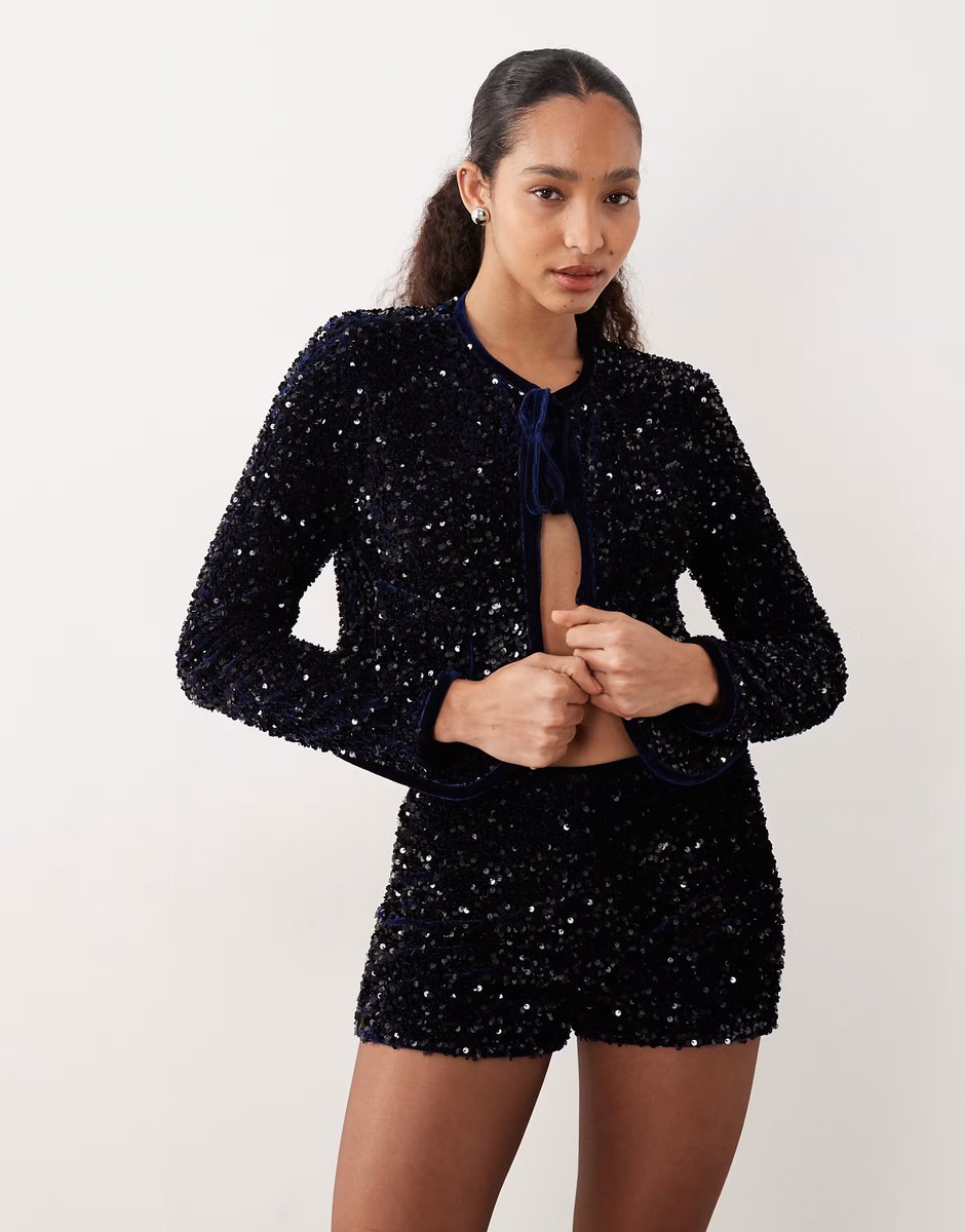 The Mango Sequin Micro Short Co-ord in Navy is ideal for evening, party.