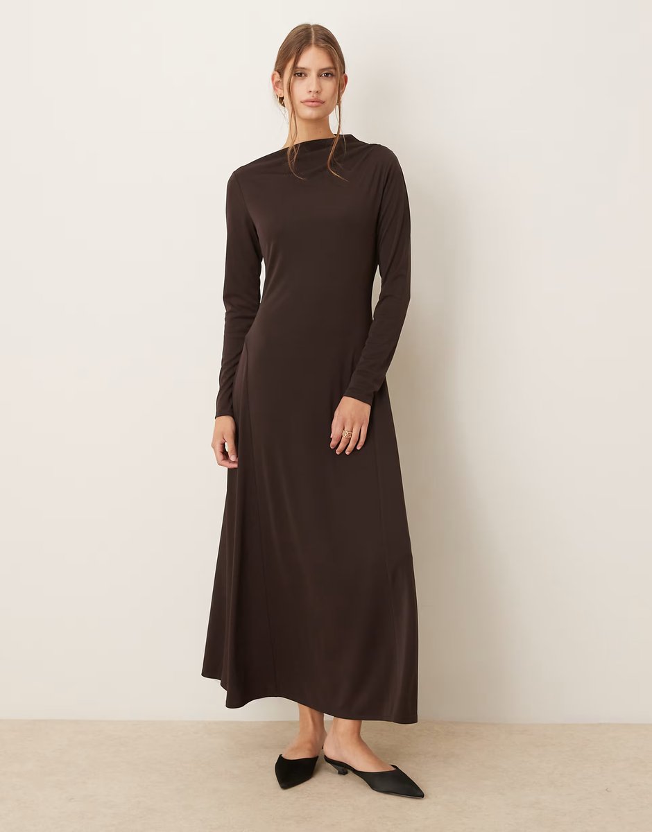 The ASOS Slash Neck Long Sleeve Maxi Dress in Brown is ideal for formal, casual.