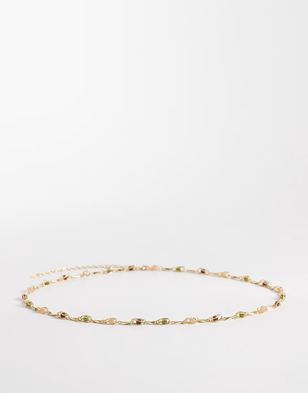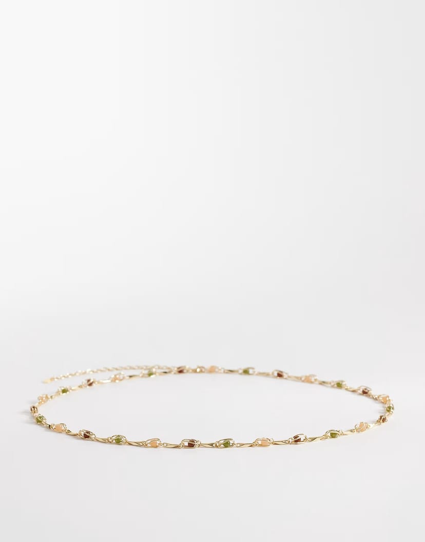 Elegant gold chain belt from ASOS adorned with gemstone embellishments. A perfect accessory to elevate any outfit with its sparkling details.
