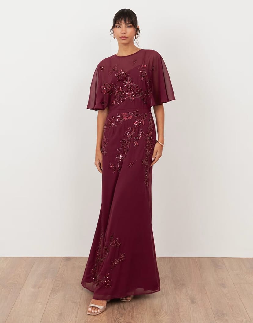 The ASOS cranberry embellished angel sleeve maxi dress is ideal for evening, formal, party.