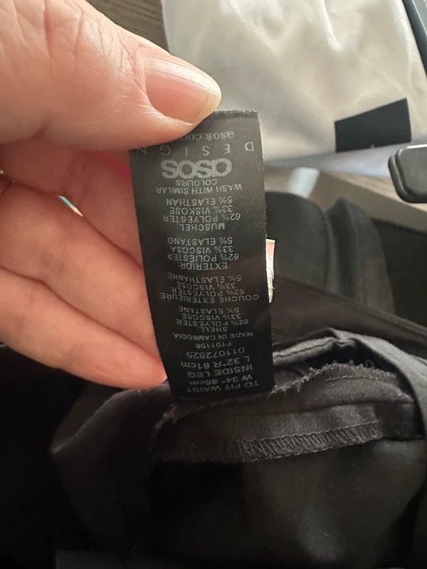 The ASOS Men’s Black Formal Trousers is made from polyester, elastane, viscose, nylon.
