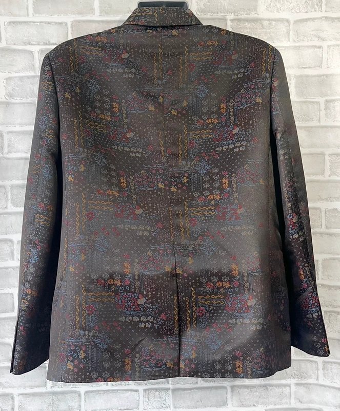 Brown/Multi Double Breasted Blazer — the perfect addition to your formal wardrobe. Designed with a double breasted fastening, slight shine, and underarm to underarm 22.5”. Features a length from shoulder 28.5”. Ideal for formal events.