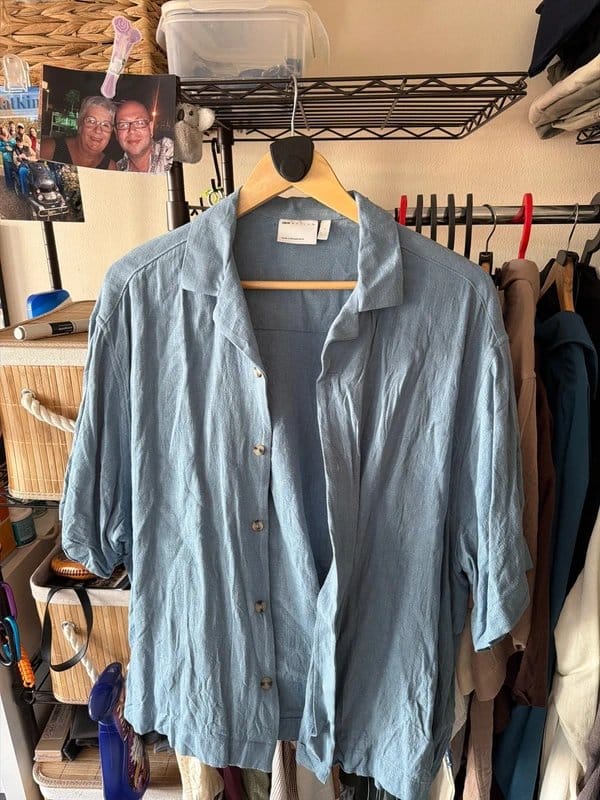 “Pair with light blue chinos and loafers for a smart-casual look.”