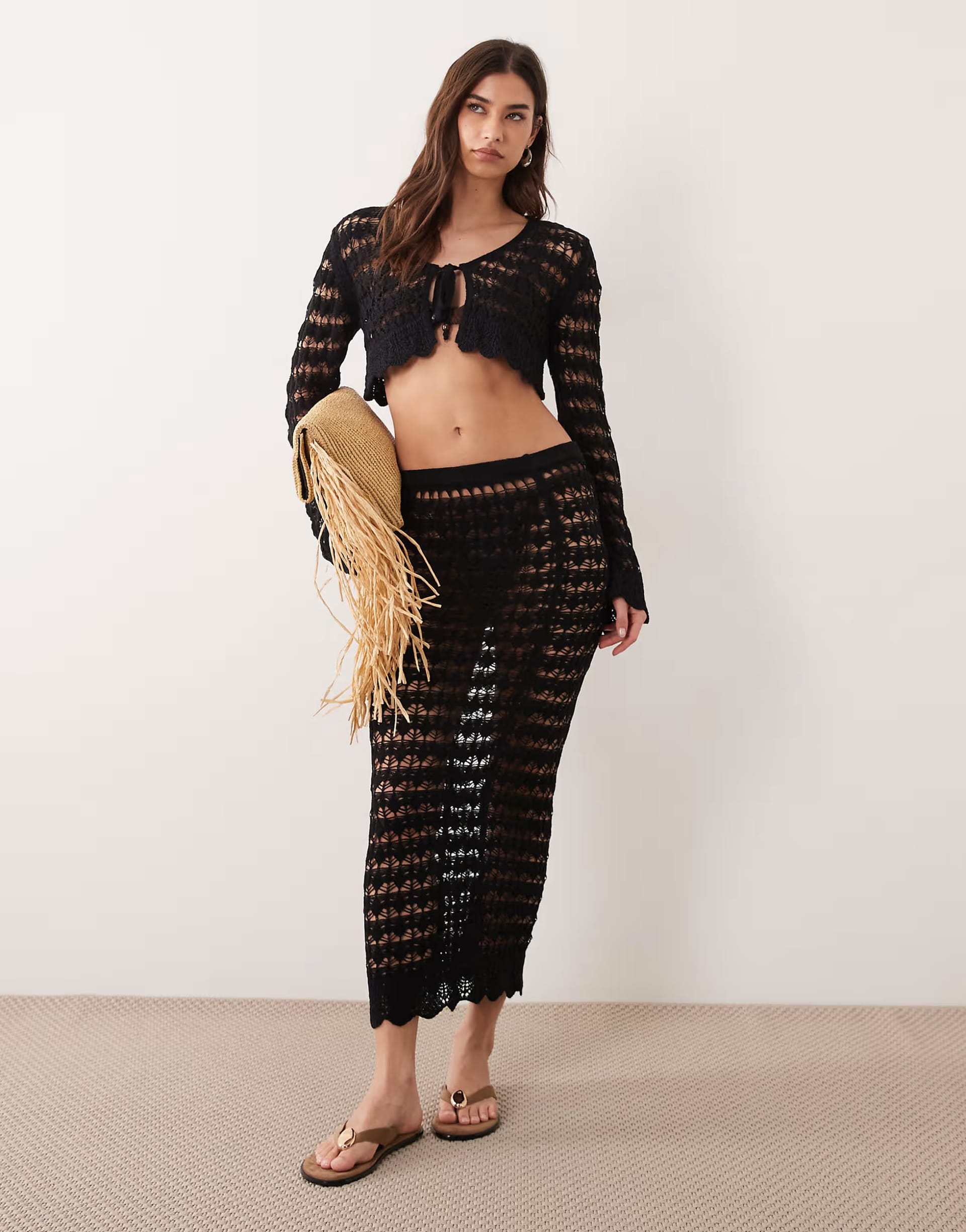 “Pair with brown leather sandals and a woven straw clutch for a boho-chic summer look.”