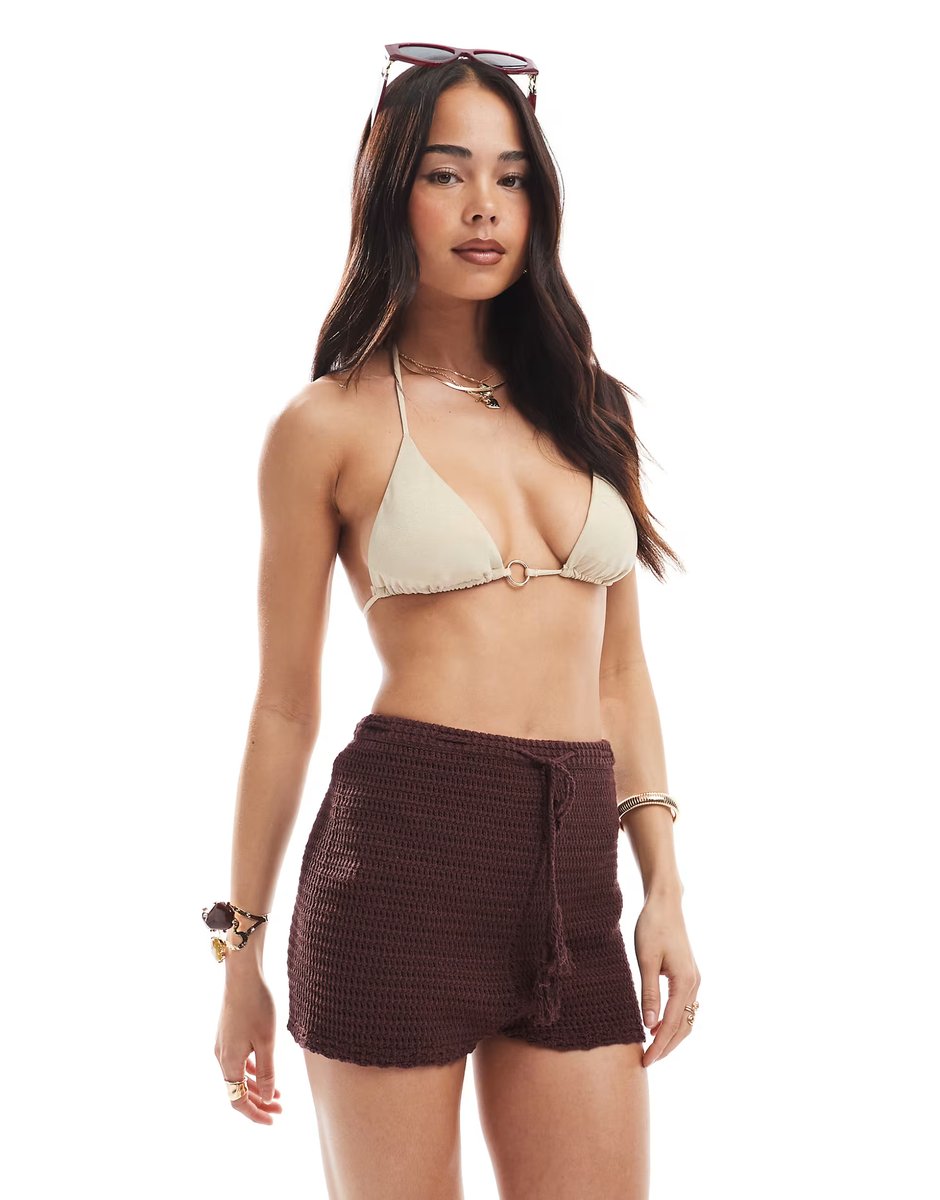 The ASOS Miss Selfridge Crochet Knit Booty Short in Chocolate is ideal for beach, casual.