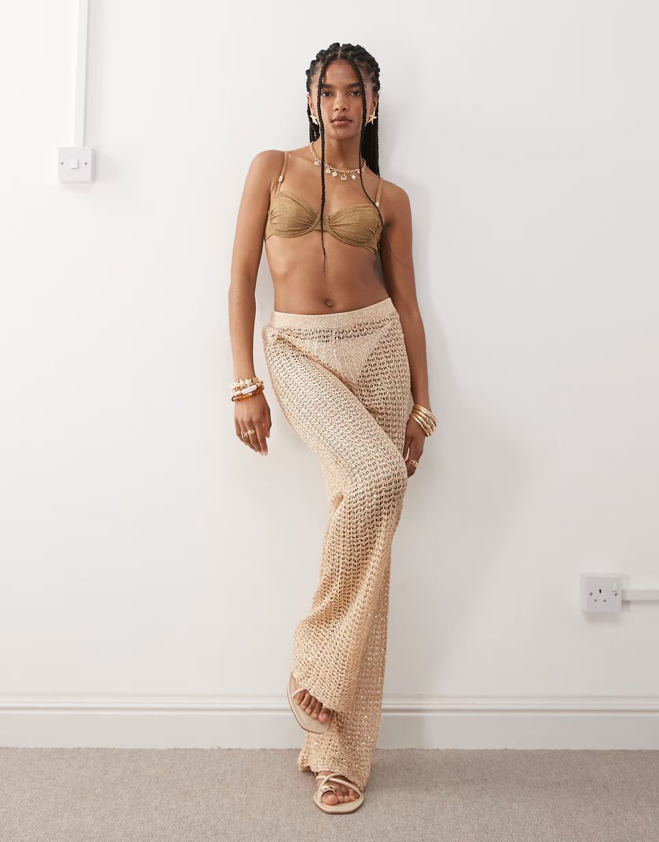 The ASOS Miss Selfridge Gold Sequin Beach Trouser is ideal for beach, summer, party.