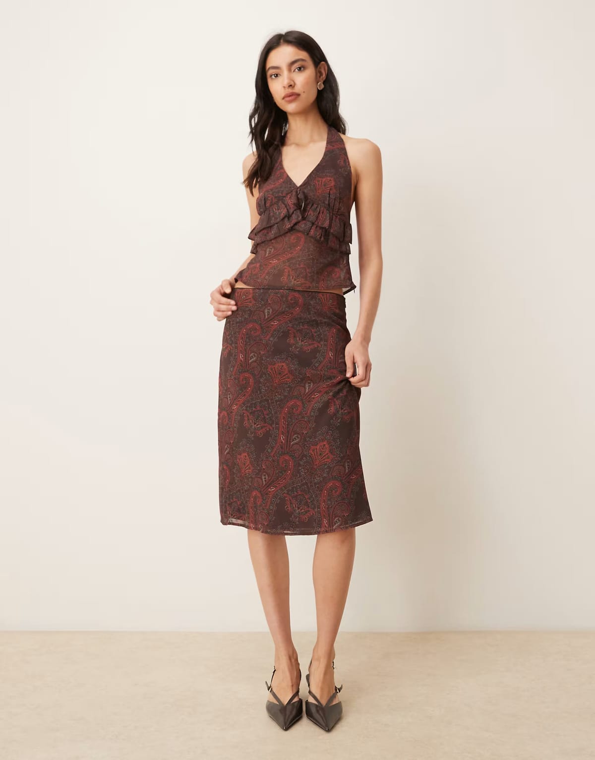 The ASOS Paisley Midi Skirt with Royal Paisley in Brown is ideal for evening, party.