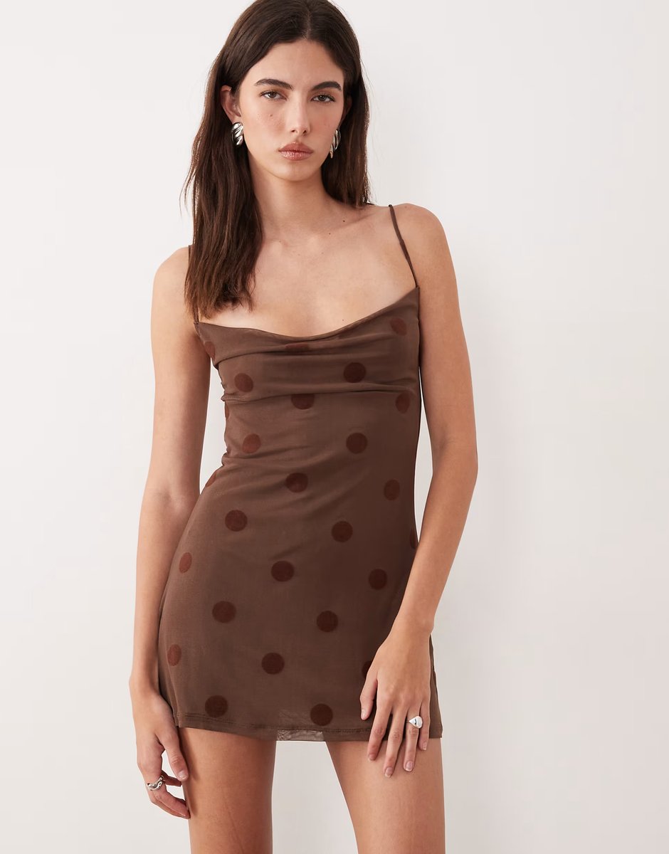 The Motel Pastila Brown Polka Dot Mini Dress is ideal for casual, party, evening.