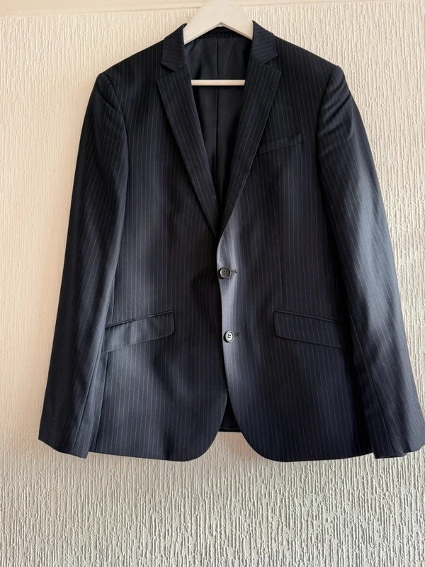 The ASOS Navy Pinstripe Wool Jacket is ideal for work, business, formal.