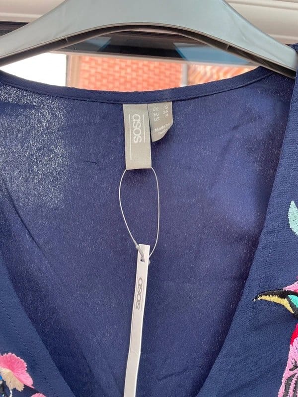 A stunning Navy floral dress from ASOS. This dress features a beautiful floral pattern and is made from a lightweight fabric. Perfect for casual outings or special occasions.