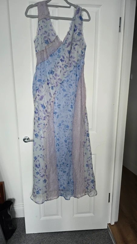 The ASOS Floral Print Bias Midi Dress in Lilac is available in sizes M.