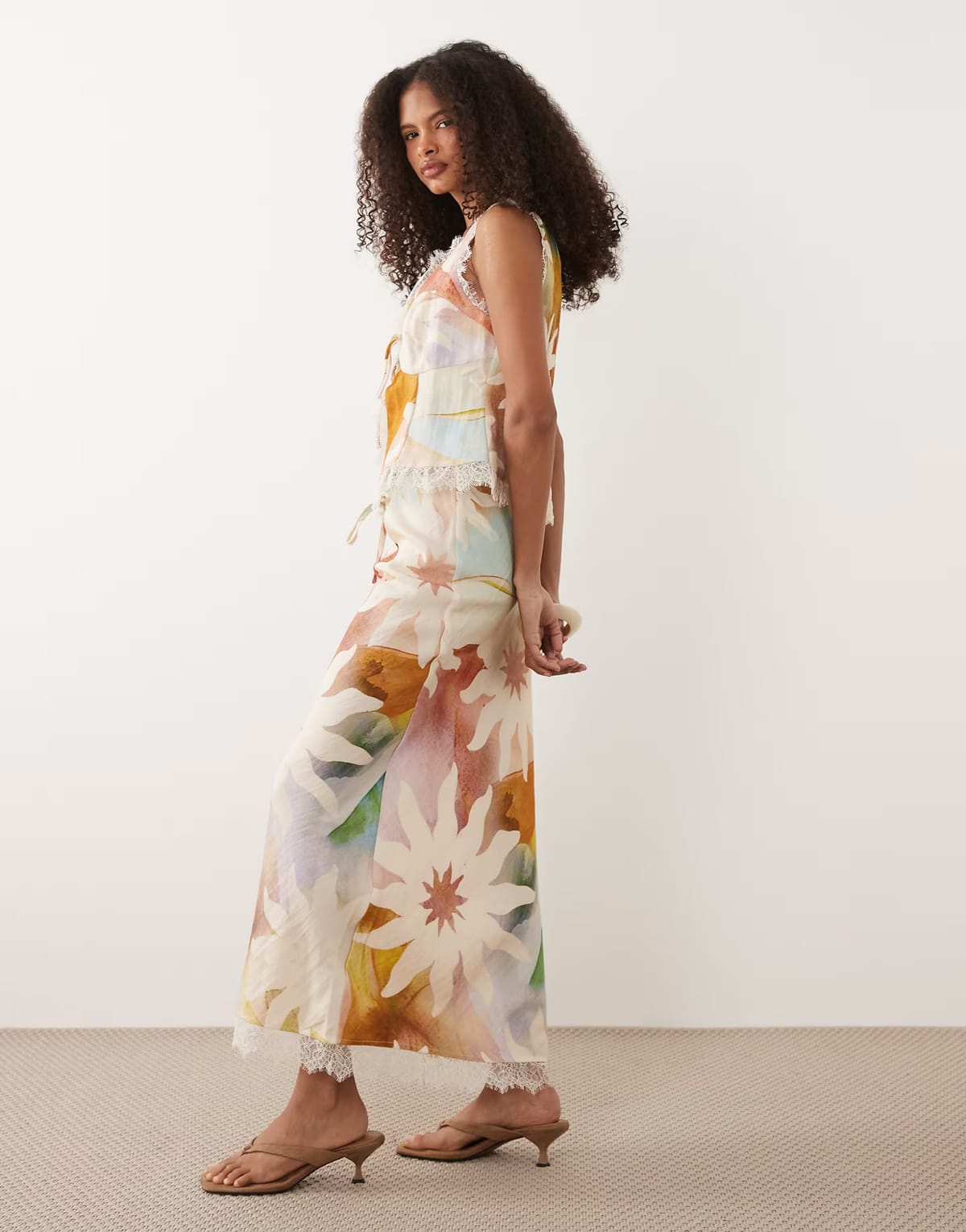 The ASOS Dorris Satin Maxi Skirt Co-ord in Soleil Print is made from satin, lace.